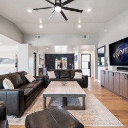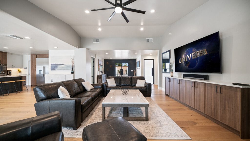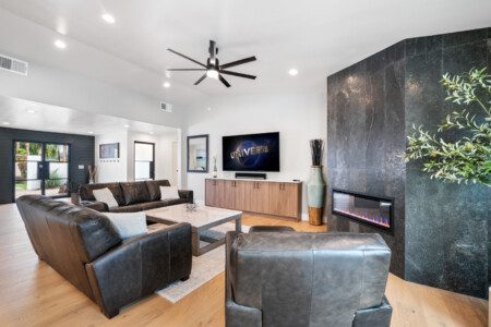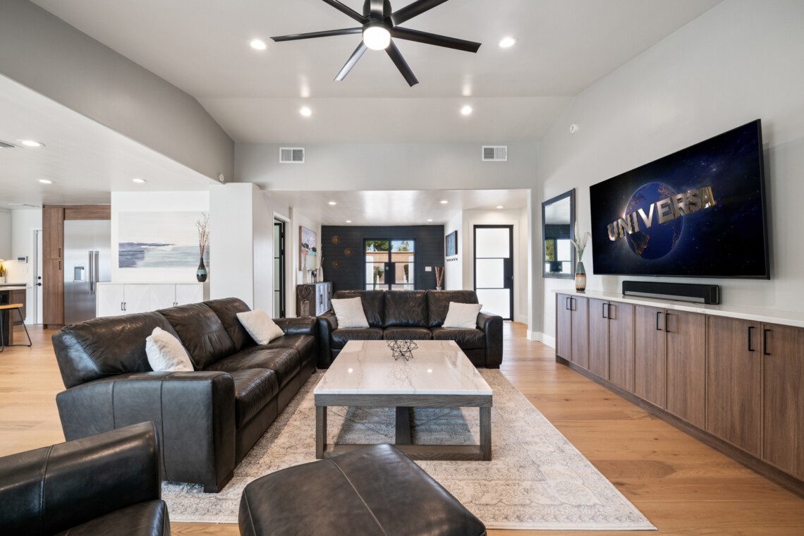 This luxury home is close to 3000 square feet and is beautifully appointed throughout. The thoughtful open floor plan is perfect for families and entertaining. The gourmet chef's kitchen is stocked with Thermador appliances, utensil drawers, cookware, and small appliances. In the large open living room, you will find upscale furniture and a 75-inch flat-screen TV. The open floor layout makes this home perfect for a group to spend time together.