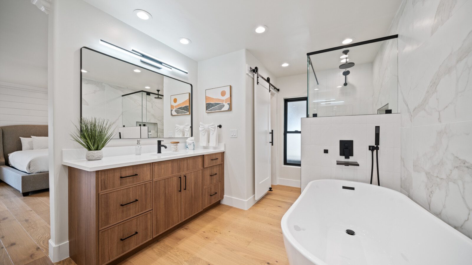 Full Primary suite with king bed and 5-piece bathroom (access to backyard)