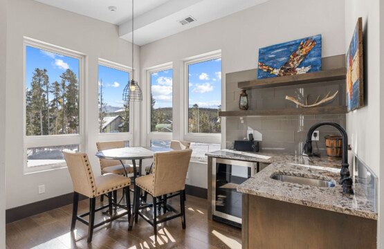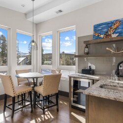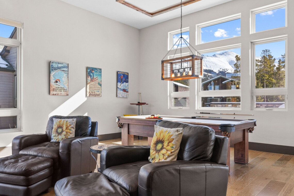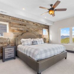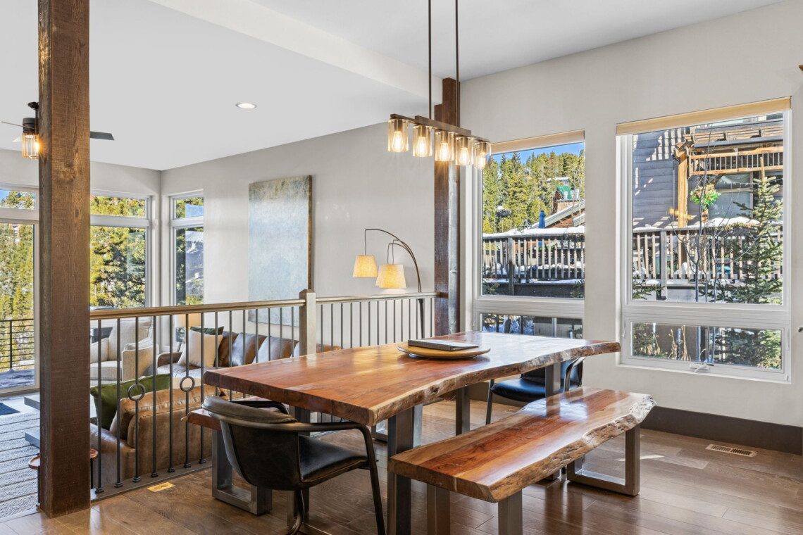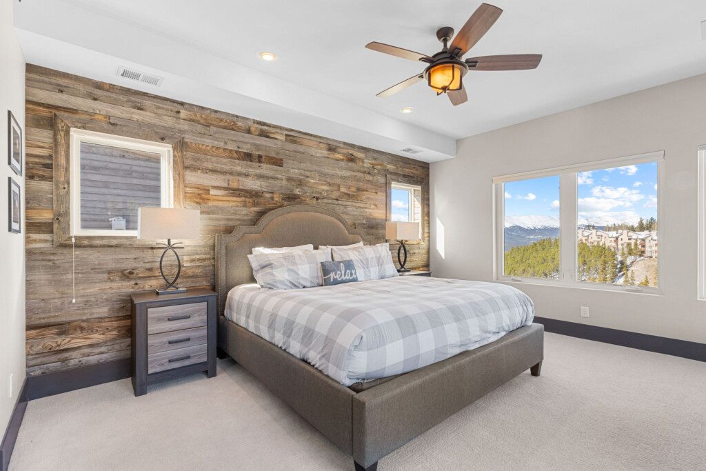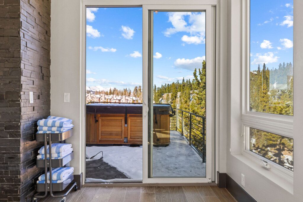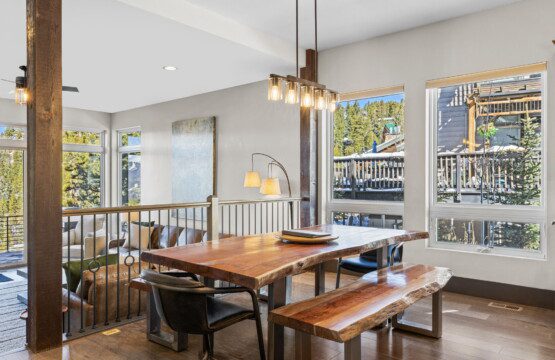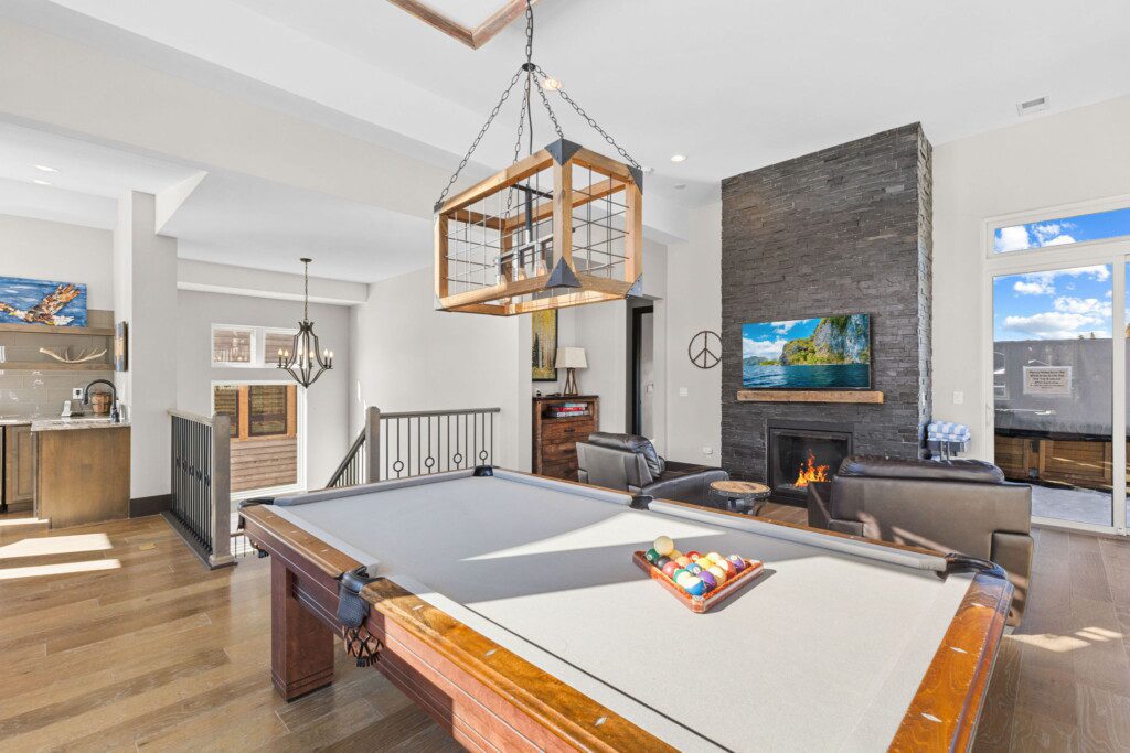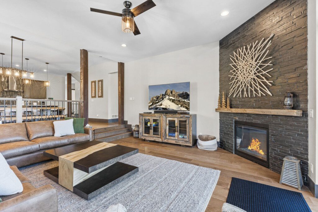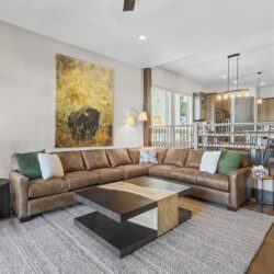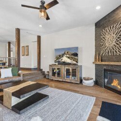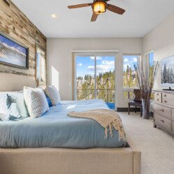 The top and main floors both have a full, private master suite with king beds. The walk-out lower floor has 2 queen bedrooms and an open bunk area that sleeps 6. Every floor has a large common area with massive west-facing windows and decks that look out onto the slopes.