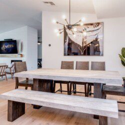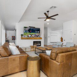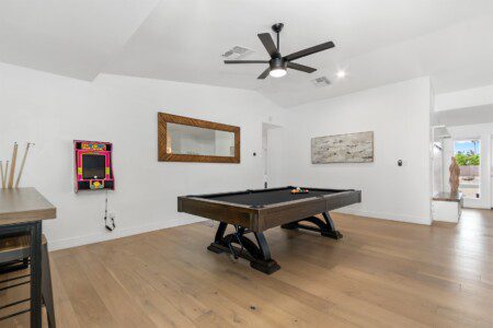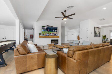 In addition to its central location, the designer touches, upscale finishes, and open layout of this home set it apart from the rest. This well-equipped home was carefully curated, using elegant bedroom fixtures, spacious living room accommodations, and an incredible game room (which includes shuffleboard, a pool table, fireplace, bar-top seating, and a 40″ TV) to create the ideal vacation home for you and your loved ones.