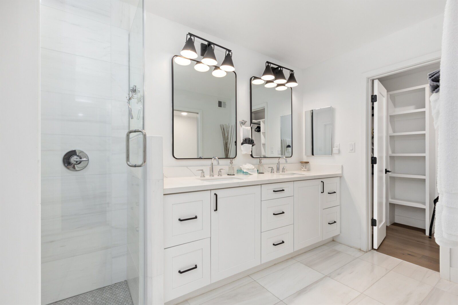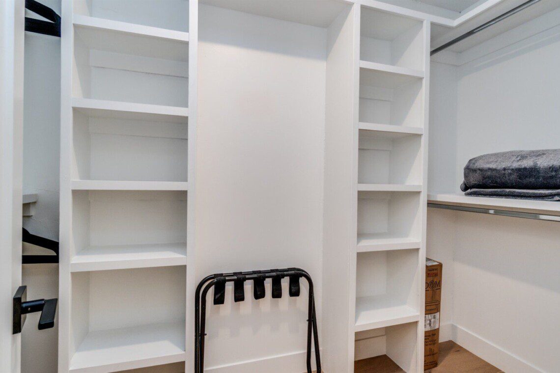 Master suite with king bed, ensuite bathroom, walk-in closet
