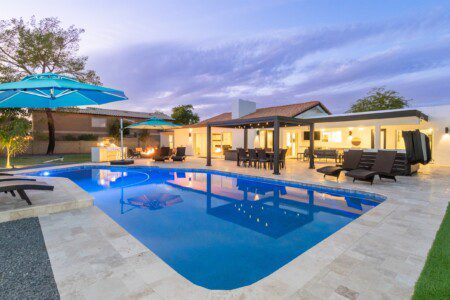 This spectacular home is located in Scottsdale, Arizona. While staying at this luxurious home, you are just a few miles from renowned shopping centers such as Kierland Commons and Scottsdale Fashion Square, celebrated golf courses like Stonecreek Golf Club and The Orange Tree Golf Club, as well as access to various restaurants and activities in Paradise Valley Gateway.